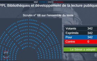Vidéo : - annonce du débat, - intervention de Mme Roselyne Bachelot, Ministre de la Culture, - intervention de Sylvie Robert, auteure et rapporteure de la PPL - résultat du vote Article Ouest-France du vendredi 17 décembre 2021 Article issu de TV5 Monde.com Les bibliothèques publiques consacrées dans la loi Le Parlement a adopté définitivement jeudi, par un ultime vote du Sénat, une proposition de loi PS, soutenue par le gouvernement, visant à consacrer dans la loi les quelque 16.500 bibliothèques publiques, "premier équipement culturel" de France. Le texte initié par la sénatrice socialiste Sylvie Robert [...]