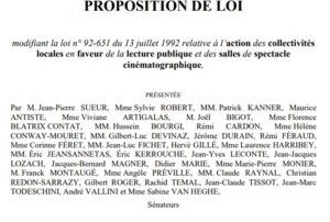 PROPOSITION DE LOI modifiant la loi n° 92-651 du 13 juillet 1992 relative à l’action des collectivités locales en faveur de la lecture publique et des salles de spectacle cinématographique Pour obtenir la PPL cliquer ici Mesdames, Messieurs, La loi du 13 juillet 1992 sur l’action culturelle des collectivités locales autorise les communes, les départements et les régions à apporter des aides directes aux salles de spectacle cinématographique. Elle a été intégrée dans le code général des collectivités territoriales aux articles L.2251-4 (communes), L3232-4 (départements), art. L.4211-1 (régions) et L.5111-4 (EPCI) et constitue un mode privilégié de financement direct [...]