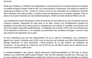 L’heure est grave En prenant cette folle décision de dissoudre l’Assemblée nationale, le Président de la République a placé l’extrême droite aux portes du pouvoir. Au bord du précipice, face à l’histoire, il nous revient en tant qu’électrice et qu’électeur de trancher et de faire preuve de cet esprit de responsabilité qui a tant manqué au Président. Cela devient criant, le RN n’a pas de réel programme. Jamais il ne sera social ; le reniement sur les retraites en est l’exemple frappant. Ne restent que les bouc-émissaires : étrangers, binationaux et tous les autres à venir. Leurs promesses sont une imposture. [...]